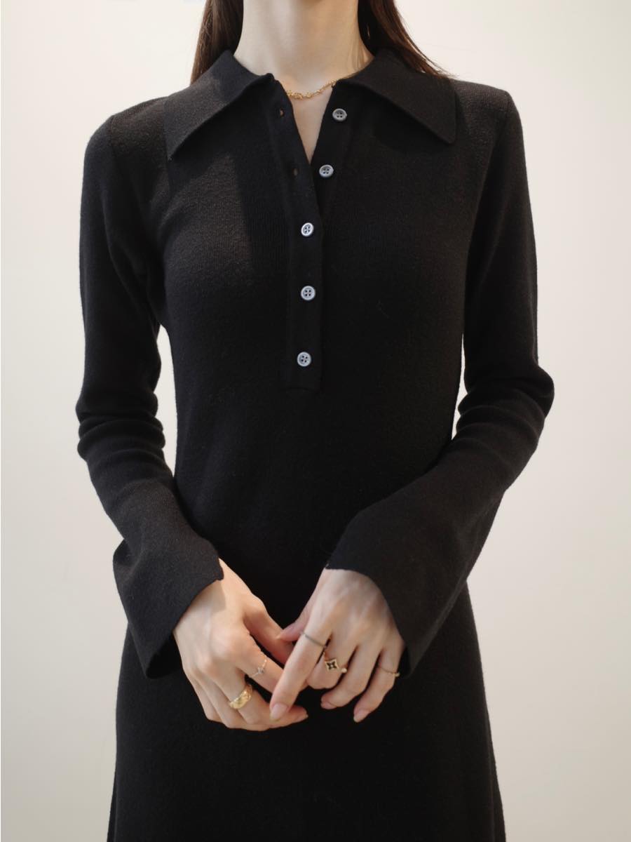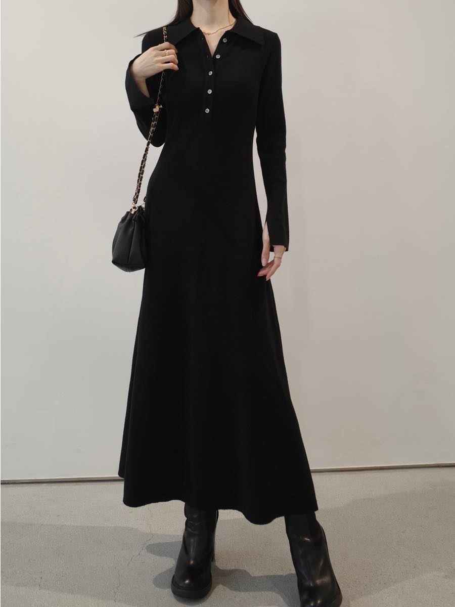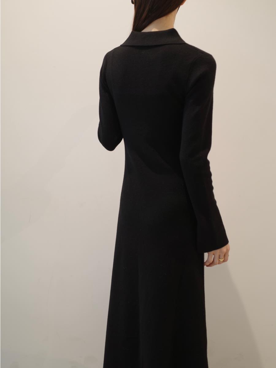 【デザイン&ディテールポイント】 トレンドのポロネックと、手元にさりげなくスリットが入ったポイントのワンピース。 ほどよくフィットしながら裾に向かってフレアに広がるシルエットは、ボディラインを美しく見せつつも、リラックスした着心地を叶えます。 カラー展開はブラックとグレーの2色展開。 【コーディネートポイント】 一枚で完成するスタイルアップワンピースは、ショートブーツやチェーンバッグと合わせてシックに、スニーカーで外せば抜け感のあるカジュアルコーデにも。 シンプルだからこそ、アクセサリーで遊びを効かせるのも◎。 春先まで長く着回せる素材は、様々なスタイリングを楽しめます。 グレーはこちら polo neck slit sleeve dress / grey 着用アイテム ■bag ball chain shoulder bag / black ※その他のアイテムはモデル私物です。 ■素材 アクリル50% ポリエステル30% ナイロン20% ■サイズ詳細(cm) 着丈121 肩幅31 袖幅57 バスト34 ■原産国 中国 モデル身長 158cm