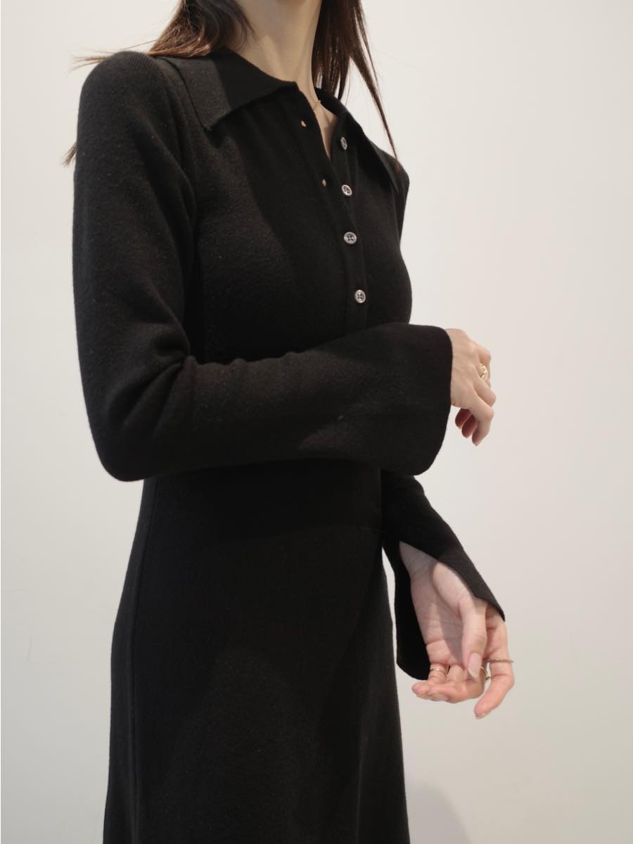 TOPページ > amel > 【NEW】polo neck slit sleeve dress / black