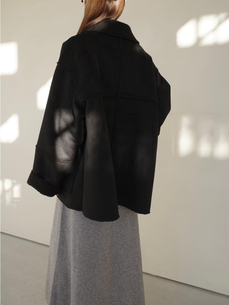 【デザイン&ディテールポイント】 トレンド感のあるオーバーサイズシルエットに、ボア素材がアクセントになったジャケット。 マットな質感の生地が高級感を演出し、程よく丸みのあるフォルムが女性らしさもプラス。 厚手のインナーともレイヤードしやすく、寒い季節にも重宝する一着。 【コーディネートポイント】 ボア素材でカジュアル感をプラスしながらも、品のあるスタイリングが叶うデザインは、スカートからパンツスタイルまで幅広く活躍。 袖口のボアを見せることで、抜け感のある着こなしに。 ワンピースの上にさらっと羽織るだけでもコーディネートが完成します。 着用アイテム ■dress polo neck slit sleeve dress / grey ※その他のアイテムはモデル私物です。 ■素材 表地・裏地:ポリエステル100% ■サイズ詳細(cm) 着丈70.5 バスト130 肩幅53 袖丈56 ■原産国 中国 モデル身長 158cm