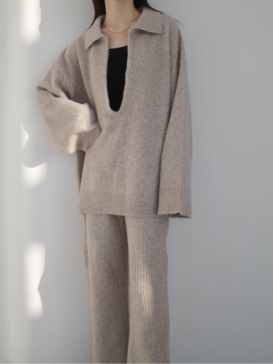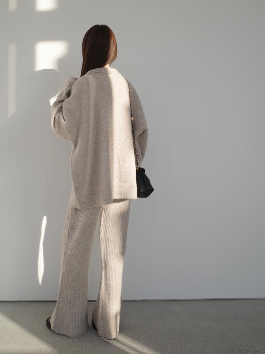 【デザイン&ディテールポイント】 リブニットで仕立てたあたたかみのあるリラックスニットパンツ。 脚のラインを拾いすぎないストレートフレアシルエットで、自然にスタイルアップを叶えます。 ウエストは伸縮性のあるリブ仕様でストレスフリーの穿き心地。 ニットの素材感と、表情のあるリブ編みがほどよい抜け感を演出する一本です。 ベージュとチャコールの二色展開。 【コーディネートポイント】 同素材のニットトップスとセットアップで着ると、こなれ感のある大人のリラックススタイルに。 コンパクトなトップスと合わせてカジュアルにまとめるのもおすすめ。 ゆったりとしたトップスとのスタイリングは、より抜け感のあるコーディネートを楽しめます。 ロングコートやショート丈アウターとも相性が良く、秋冬のスタイリングに万能なニットパンツです。 ※セットでの購入は単品買いに比べ2,000円お得に購入ができます。 ■チャコールはこちら relax rib knit pants / charcoal 着用アイテム ■tops relax 2way collar knit / beige ■bag ball chain shoulder bag / black ※その他のアイテムはモデル私物です。 ■素材 ポリエステル:98% 毛:5% レーヨン:5% ポリウレタン:1% ■サイズ詳細(cm) ウエスト巾:30.5 わたり:27 裾巾:27 股上:26 股下:70 ヒップ:41c ■原産国 中国 モデル身長 158cm
