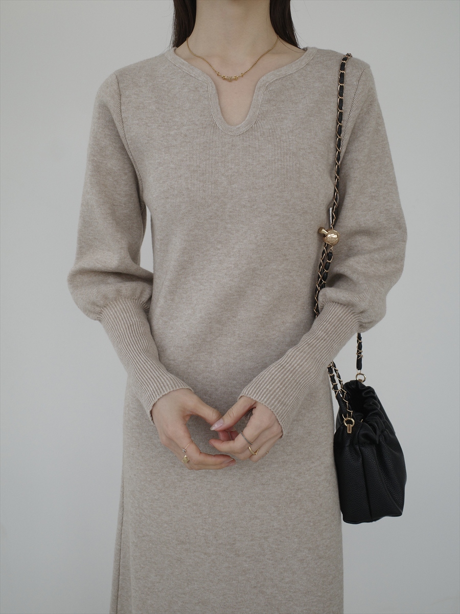 TOPページ > amel > 【NEW】heart neck puff sleeve dress / beige