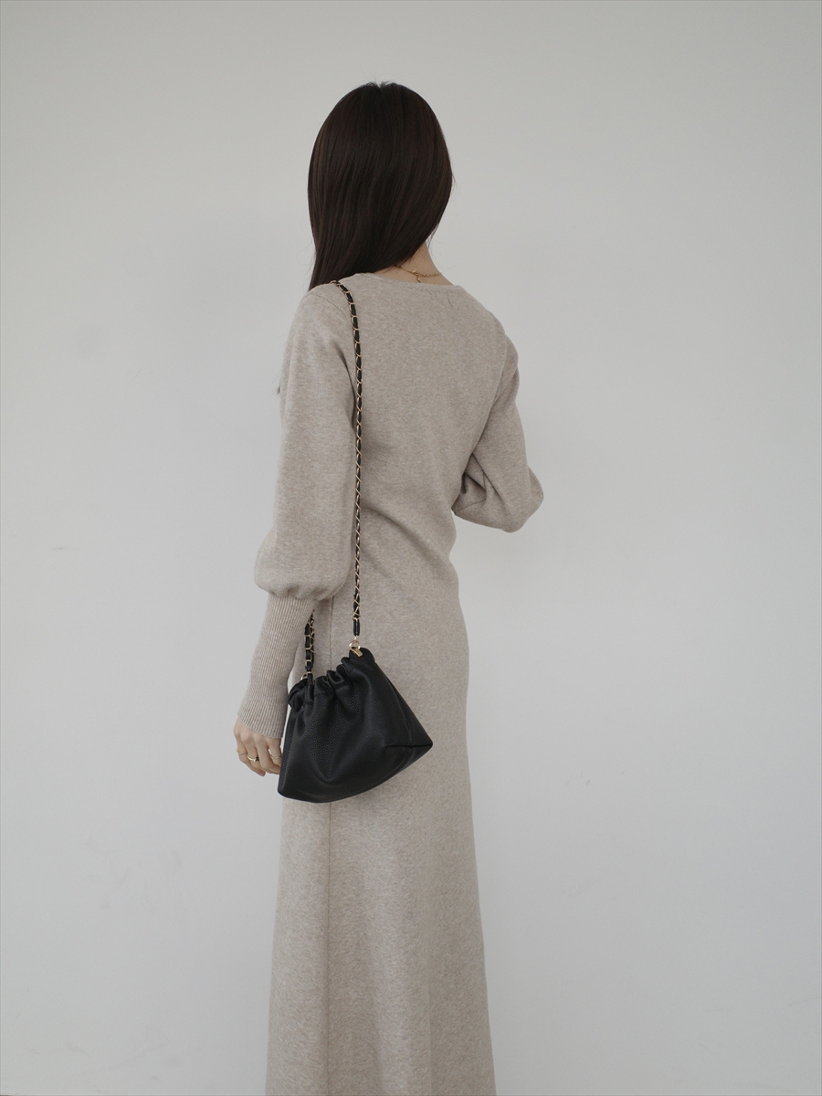 【デザイン&ディテールポイント】 シンプルながらも美しいシルエットにこだわった、ニットロングワンピース。 縦にすとんと落ちるラインが身体のラインを拾いすぎず、自然にスタイルアップを叶えます。 首元はハートネックデザインで、デコルテを綺麗に見せつつ程よい抜け感を演出。 袖口と身頃でさりげなく編地を切り替え、シンプルな中にも奥行きのある表情に。 柔らかくチクチク感の少ないニット素材を使用し、リラックスした着心地ながらも上品な印象。 1枚でコーディネートが完成するため、忙しい日にも重宝するアイテムです。 ベージュ、グレー、ブラックの3色展開。 【コーディネートポイント】 ブーツやショルダーバッグを合わせることで、 デイリーからお出かけまで幅広いシーンに対応可能。 グレーはこちら heart neck puff sleeve dress / grey ブラックはこちら heart neck puff sleeve dress / black 着用アイテム ■bag ball chain shoulder bag / black ※その他のアイテムはモデル私物です。 ■素材 ポリエステル50% アクリル30% ナイロン20% ■サイズ詳細(cm) 着丈125.5 肩幅31 袖丈59 バスト72 ウエスト62(伸ばし86) ■原産国 中国 モデル身長 158cm