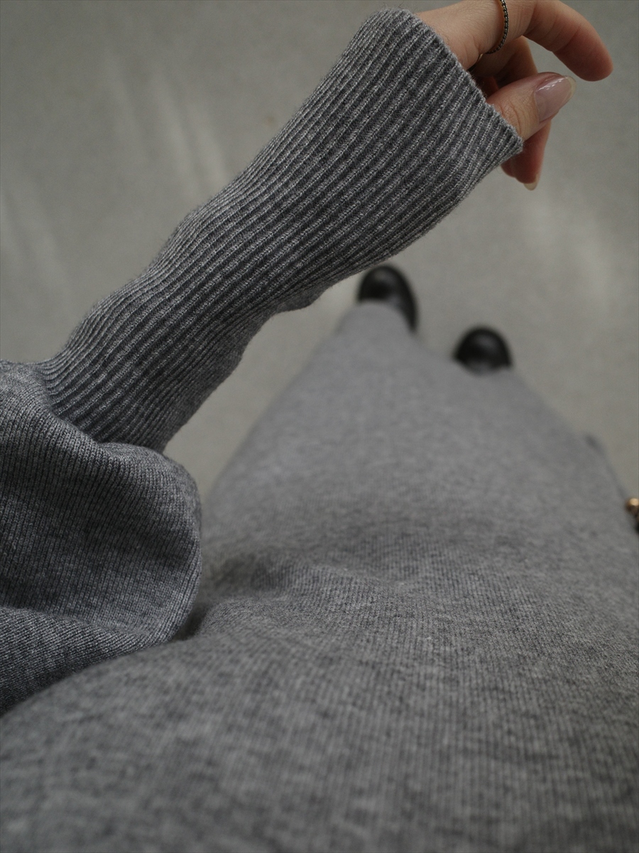 【デザイン&ディテールポイント】 シンプルながらも美しいシルエットにこだわった、ニットロングワンピース。 縦にすとんと落ちるラインが身体のラインを拾いすぎず、自然にスタイルアップを叶えます。 首元はハートネックデザインで、デコルテを綺麗に見せつつ程よい抜け感を演出。 袖口と身頃でさりげなく編地を切り替え、シンプルな中にも奥行きのある表情に。 柔らかくチクチク感の少ないニット素材を使用し、リラックスした着心地ながらも上品な印象。 1枚でコーディネートが完成するため、忙しい日にも重宝するアイテムです。 ベージュ、グレー、ブラックの3色展開。 【コーディネートポイント】 ブーツやショルダーバッグを合わせることで、 デイリーからお出かけまで幅広いシーンに対応可能。 ベージュはこちら heart neck puff sleeve dress / beige ブラックはこちら heart neck puff sleeve dress / black 着用アイテム ■bag ball chain shoulder bag / black ※その他のアイテムはモデル私物です。 ■素材 ポリエステル50% アクリル30% ナイロン20% ■サイズ詳細(cm) 着丈125.5 肩幅31 袖丈59 バスト72 ウエスト62(伸ばし86) ■原産国 中国 モデル身長 158cm