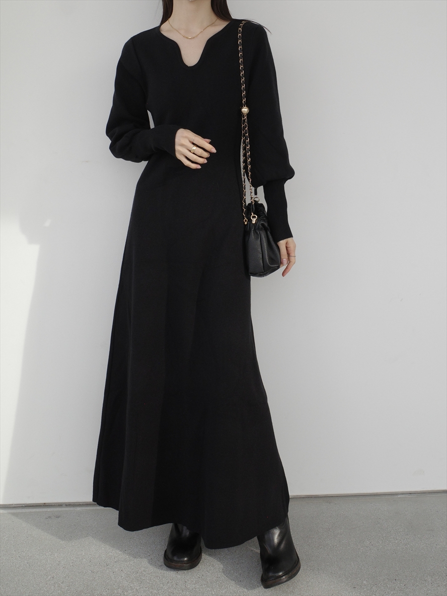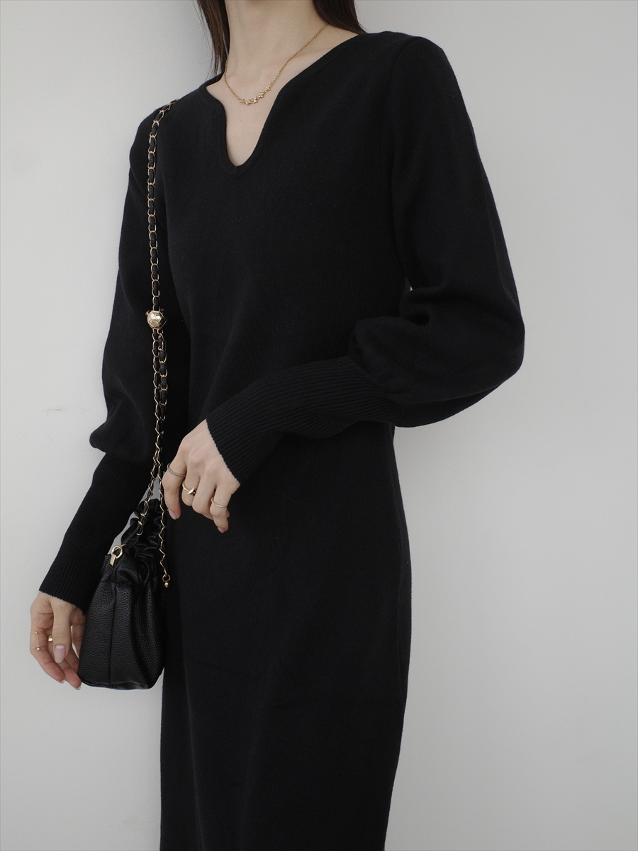 TOPページ > amel > 【NEW】heart neck puff sleeve dress / black