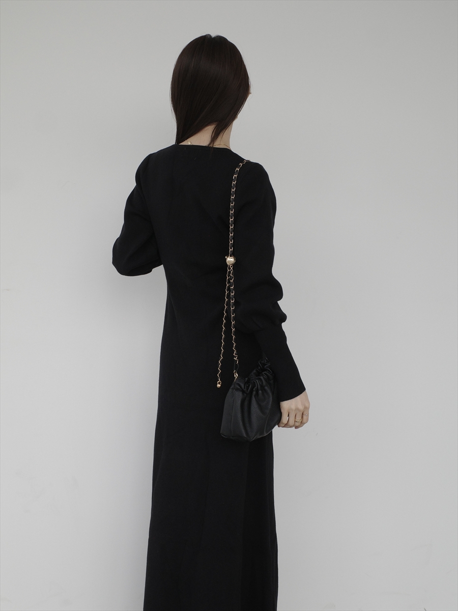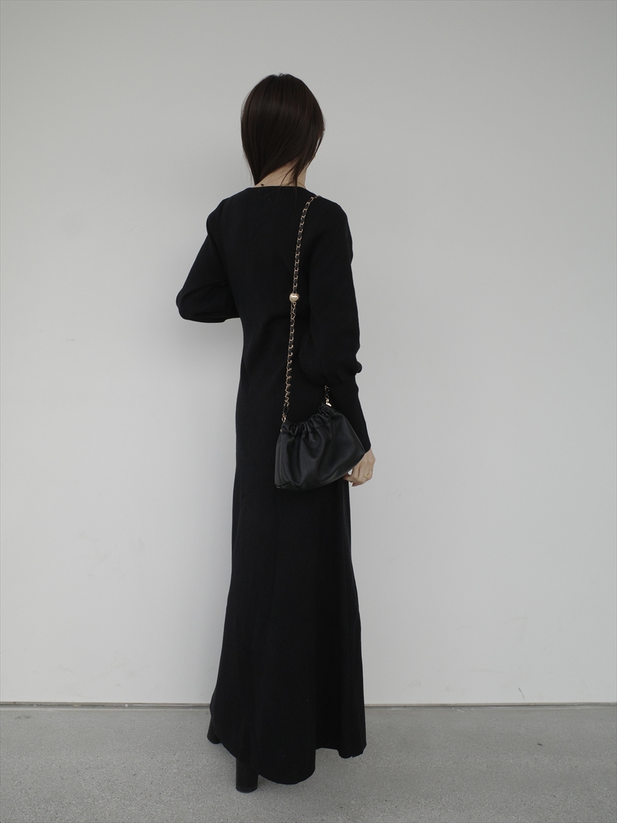【デザイン&ディテールポイント】 シンプルながらも美しいシルエットにこだわった、ニットロングワンピース。 縦にすとんと落ちるラインが身体のラインを拾いすぎず、自然にスタイルアップを叶えます。 首元はハートネックデザインで、デコルテを綺麗に見せつつ程よい抜け感を演出。 袖口と身頃でさりげなく編地を切り替え、シンプルな中にも奥行きのある表情に。 柔らかくチクチク感の少ないニット素材を使用し、リラックスした着心地ながらも上品な印象。 1枚でコーディネートが完成するため、忙しい日にも重宝するアイテムです。 ベージュ、グレー、ブラックの3色展開。 【コーディネートポイント】 ブーツやショルダーバッグを合わせることで、 デイリーからお出かけまで幅広いシーンに対応可能。 ベージュはこちら heart neck puff sleeve dress / beige グレーはこちら heart neck puff sleeve dress / grey 着用アイテム ■bag ball chain shoulder bag / black ※その他のアイテムはモデル私物です。 ■素材 ポリエステル50% アクリル30% ナイロン20% ■サイズ詳細(cm) 着丈125.5 肩幅31 袖丈59 バスト72 ウエスト62(伸ばし86) ■原産国 中国 モデル身長 158cm