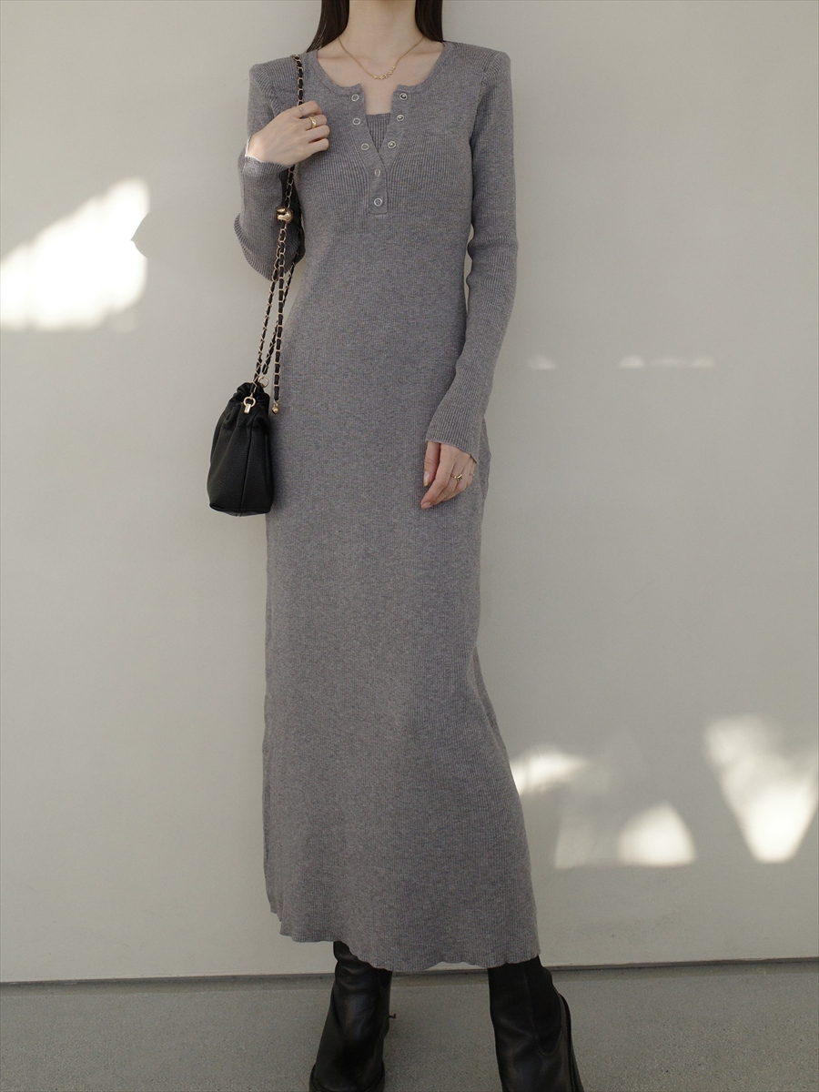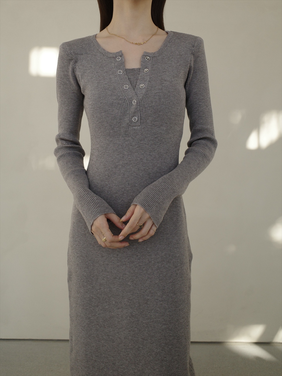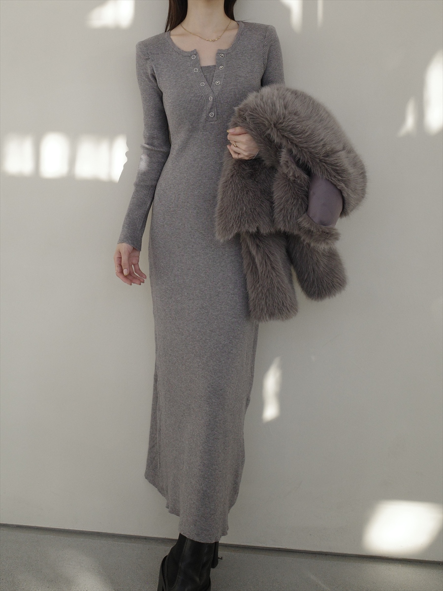 TOPページ > amel > Onepiece > 【NEW】button layered design knit onepiece / grey