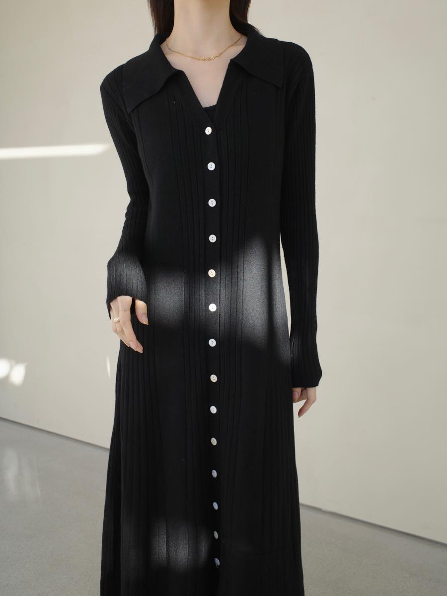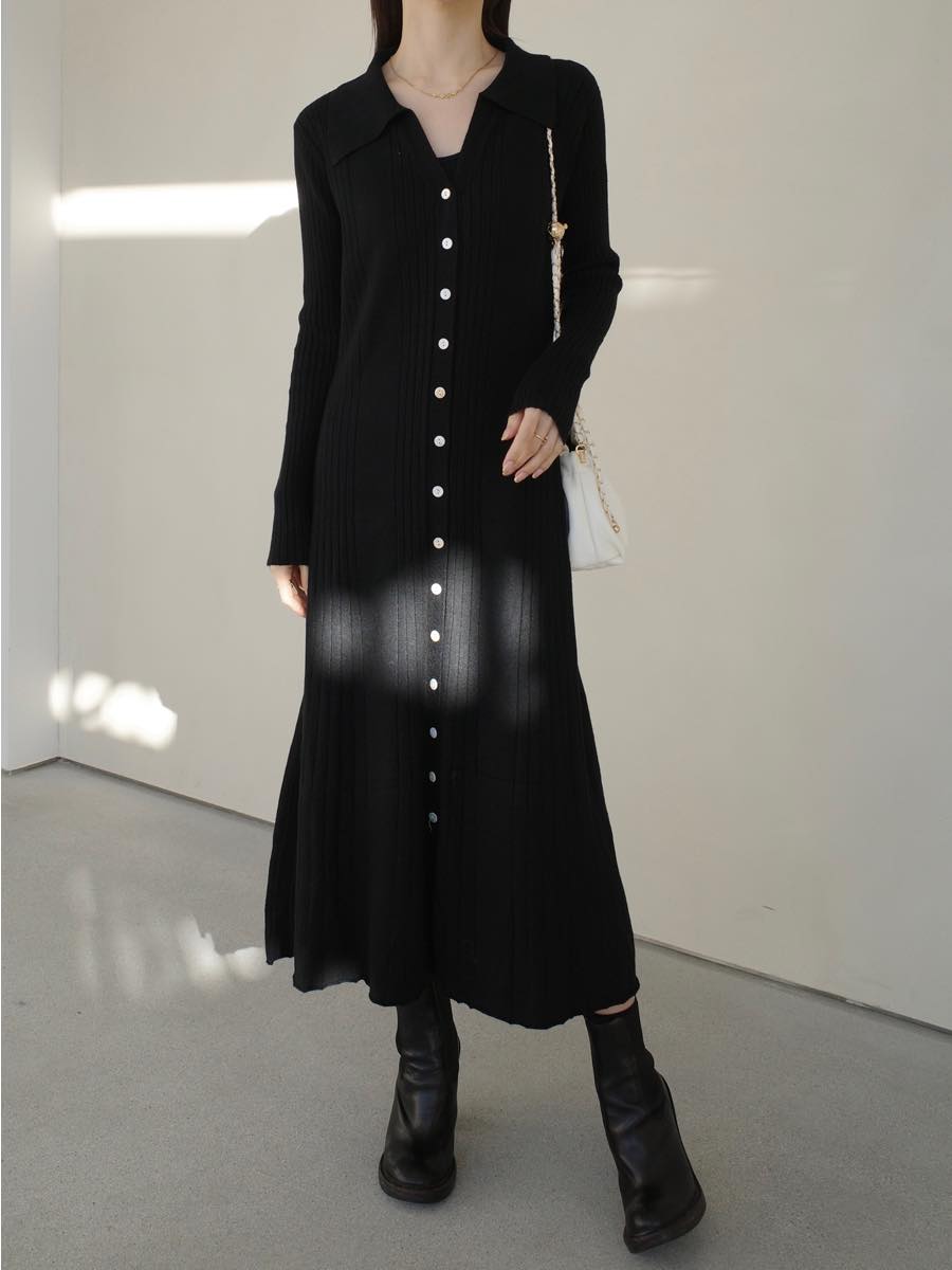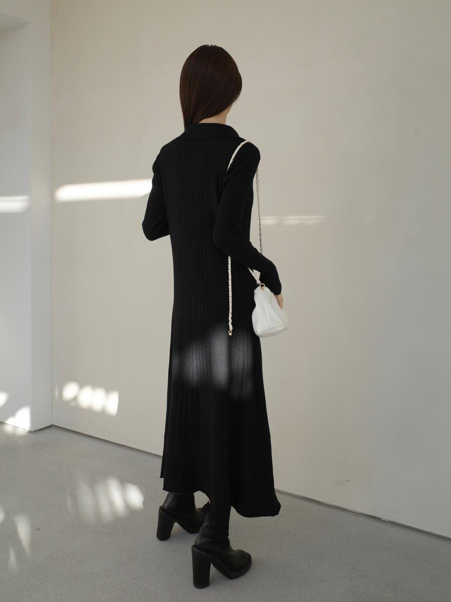 TOPページ > amel > 【Onepiece】ワンピース > 【NEW】button line polo neck knit dress / black