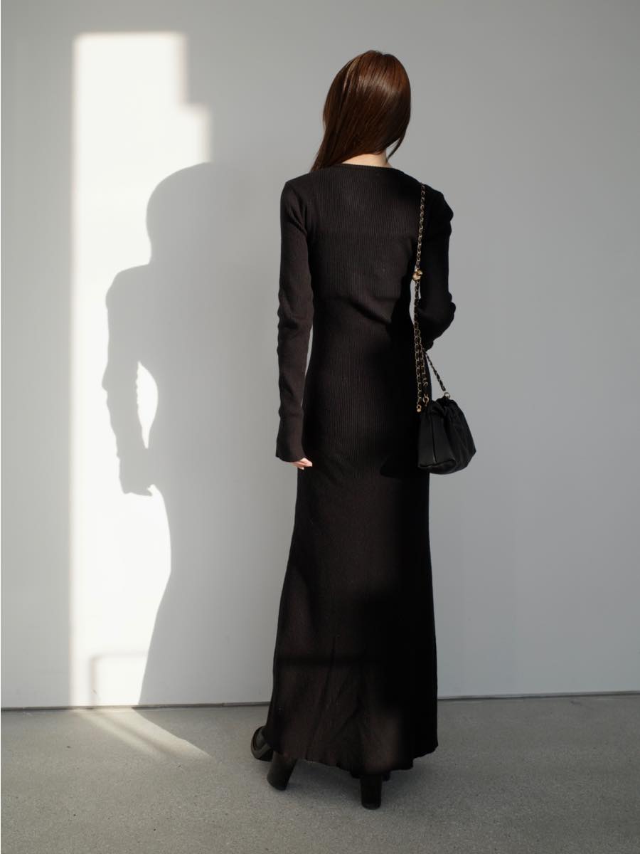 TOPページ > amel > 【Onepiece】ワンピース > 【NEW】henry neck rib knit long dress / black