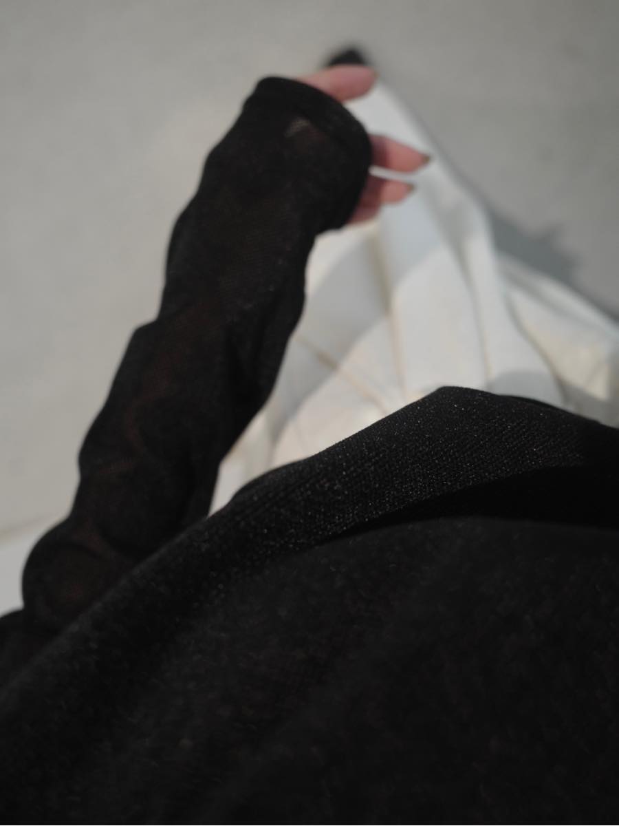 【デザイン&ディテールポイント】 シーズンムード高まるベロア調素材を使用した、上品なドレープトップス。 肩に落ちるような流れるラインが女性らしいシルエットを引き立て、華やかさと抜け感を同時に演出します。 ベロアの洗練されたムードを楽しみながら、デイリーに取り入れやすい一枚です。 ブラック、グレー、アイボリーの3色展開です。 【コーディネートポイント】 タイトスカートやマーメイドスカートと合わせてまとめると、シックで大人フェミニンなスタイルに。 ワイドパンツやデニムと合わせれば、カジュアルすぎず洗練されたコーディネートに仕上がります。 キャミワンピースのインナーなど、レイヤードしても使える優秀アイテム。 グレーはこちら velvet touch drape tops / grey アイボリーはこちら velvet touch drape tops / ivory ※その他のアイテムはモデル私物です。 ■素材 ポリエステル 92% ポリウレタン 8% ■サイズ詳細(cm) 着丈53 身幅43 肩幅38 裾幅45 袖丈63 ■原産国 中国 モデル身長 158cm