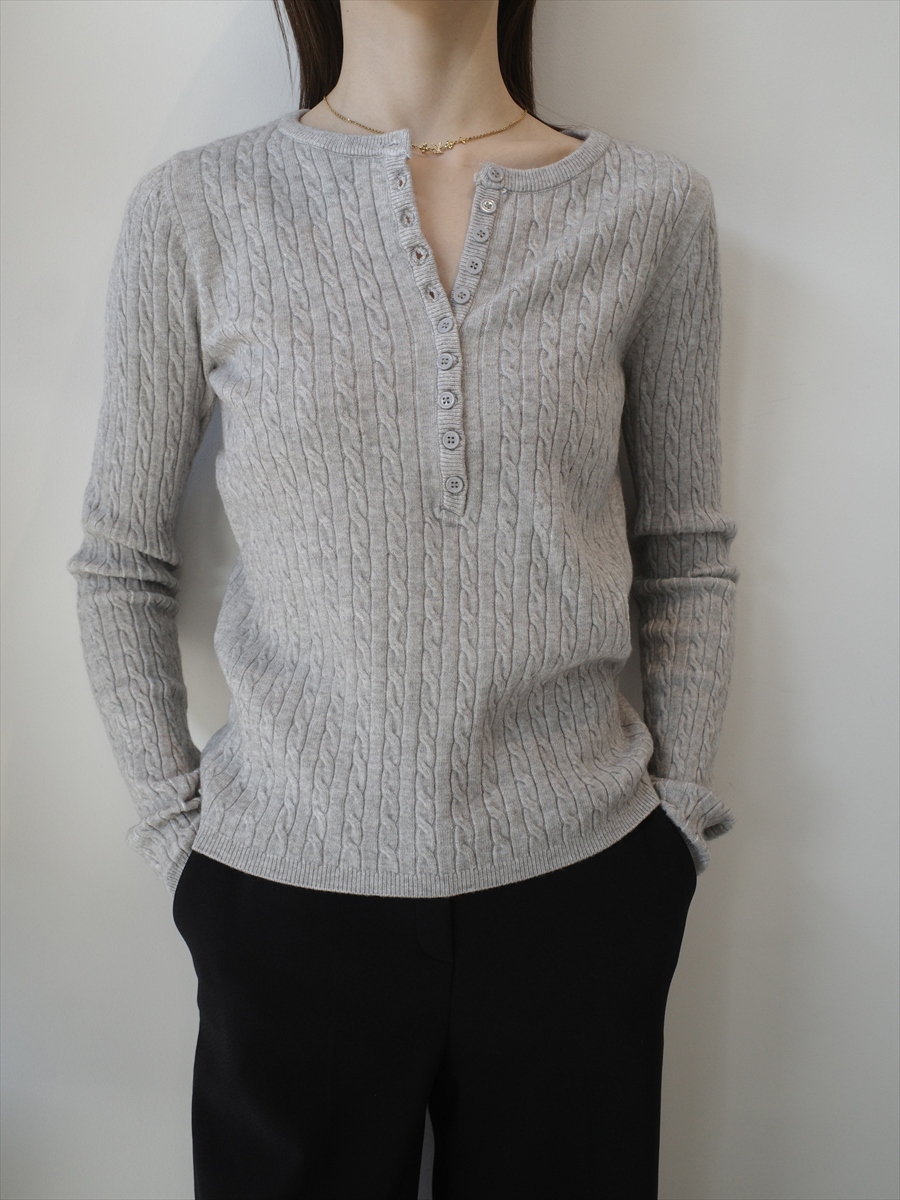 TOPページ > amel > 【Tops】トップス > 【NEW】henry neck cable knit / grey