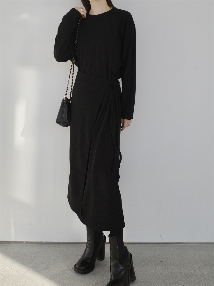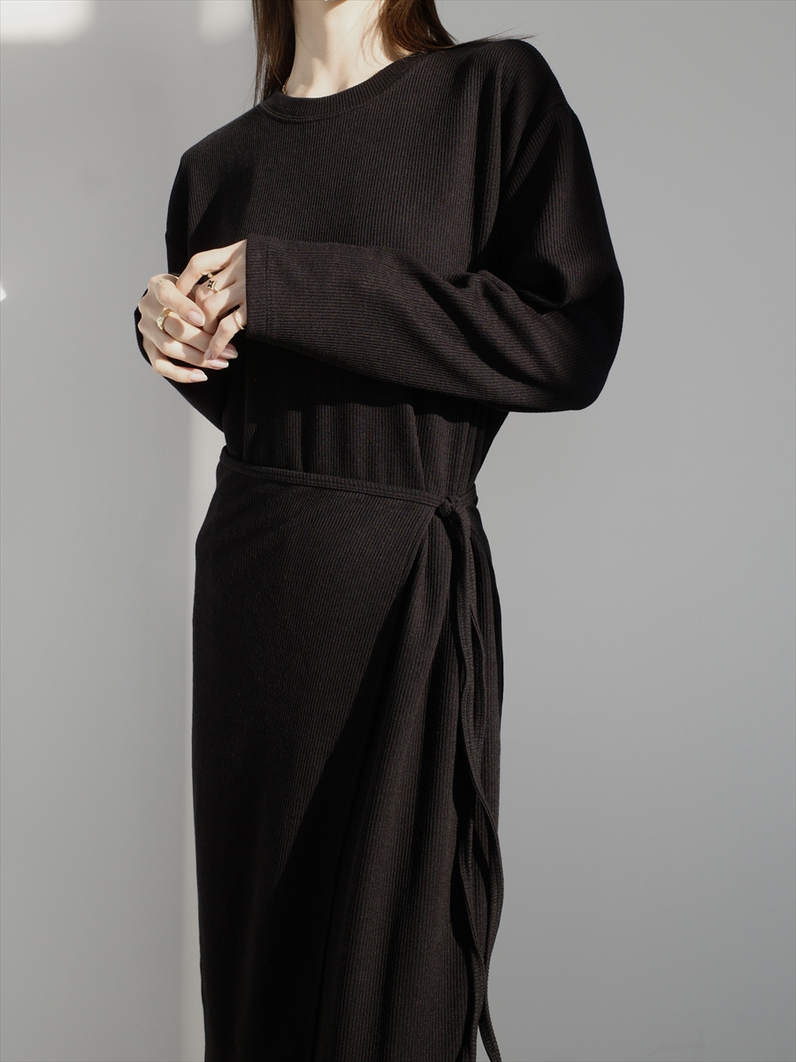 TOPページ > Onepiece > 【NEW】wrap design rib dress / black