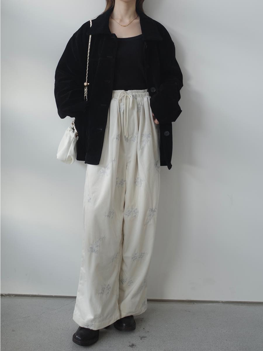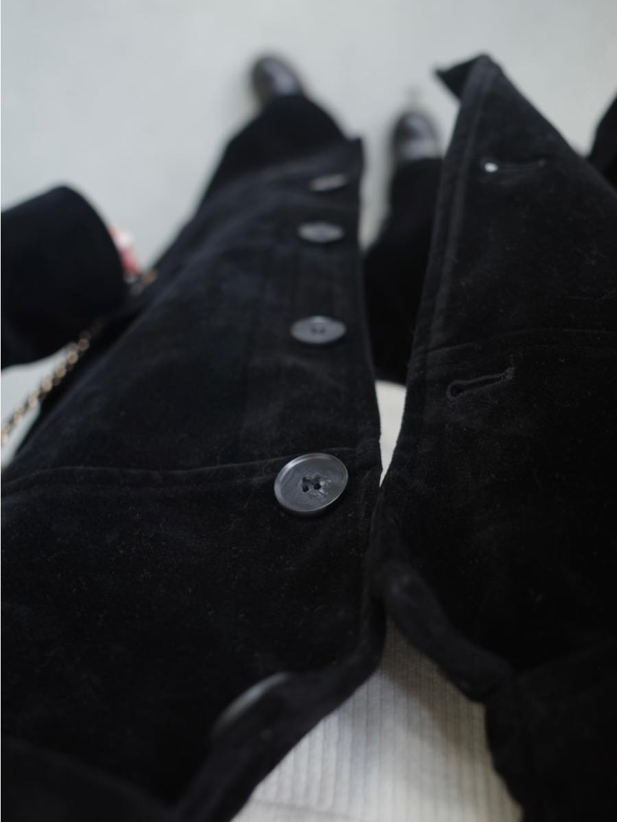【デザイン&ディテールポイント】 ベルベット素材を贅沢に使用したオーバーサイズジャケット。 ベルベットならではの質感は、シンプルなデザインの中にアクセントをプラス。 程よくゆとりのあるシルエットとドロップショルダーが、抜け感を演出しつつ、こなれた印象に。 ボタンは大きめの仕様で、甘すぎずモードな雰囲気に仕上げました。 【コーディネートポイント】 オーバーサイズのデザインは、シックなパンツスタイルからフェミニンなスカートコーデまで、幅広い着こなしを楽しめます。 ワンピースの上にさらっと羽織り、抜け感を出しても◎ ホワイトカラーのトップスを合わせることで、ベロアの質感がより引き立ちます。 カジュアルにもきれいめにも着回せる万能アウターです。 着用アイテム ■pants velvet long pants ※その他のアイテムはモデル私物です。 ■素材 ポリエステル100% ■サイズ詳細(cm) 着丈70 肩幅53 袖丈59 バスト126 ■原産国 中国 モデル身長 158cm