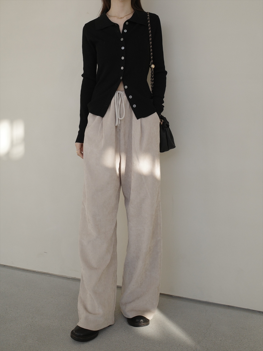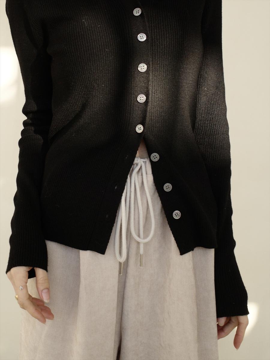 【デザイン&ディテールポイント】 ミニマルな中に女性らしさを宿した、リブニットカーディガン。 程よくフィットするシルエットと縦ラインを強調するリブ編みが、身体のラインを美しく見せてくれます。 フロントには小ぶりなボタンを並べ、クラシカルで洗練された印象に。 ボタンを留めてトップス風に着るのはもちろん、少し開けて抜け感のあるレイヤードスタイルもおすすめです。 【コーディネートポイント】 コンパクトすぎない着丈で、パンツ・スカートどちらとも好相性。 さらっと羽織れて、ロングシーズン活躍する万能アイテムです。 着用アイテム ■pants peach skin relax long pants / beige ※その他のアイテムはモデル私物です。 ■素材 レーヨン40% アクリル40% ウール20% ■サイズ詳細(cm) 着丈56.5 肩幅34 袖丈58 バスト76 ■原産国 中国 モデル身長 158cm