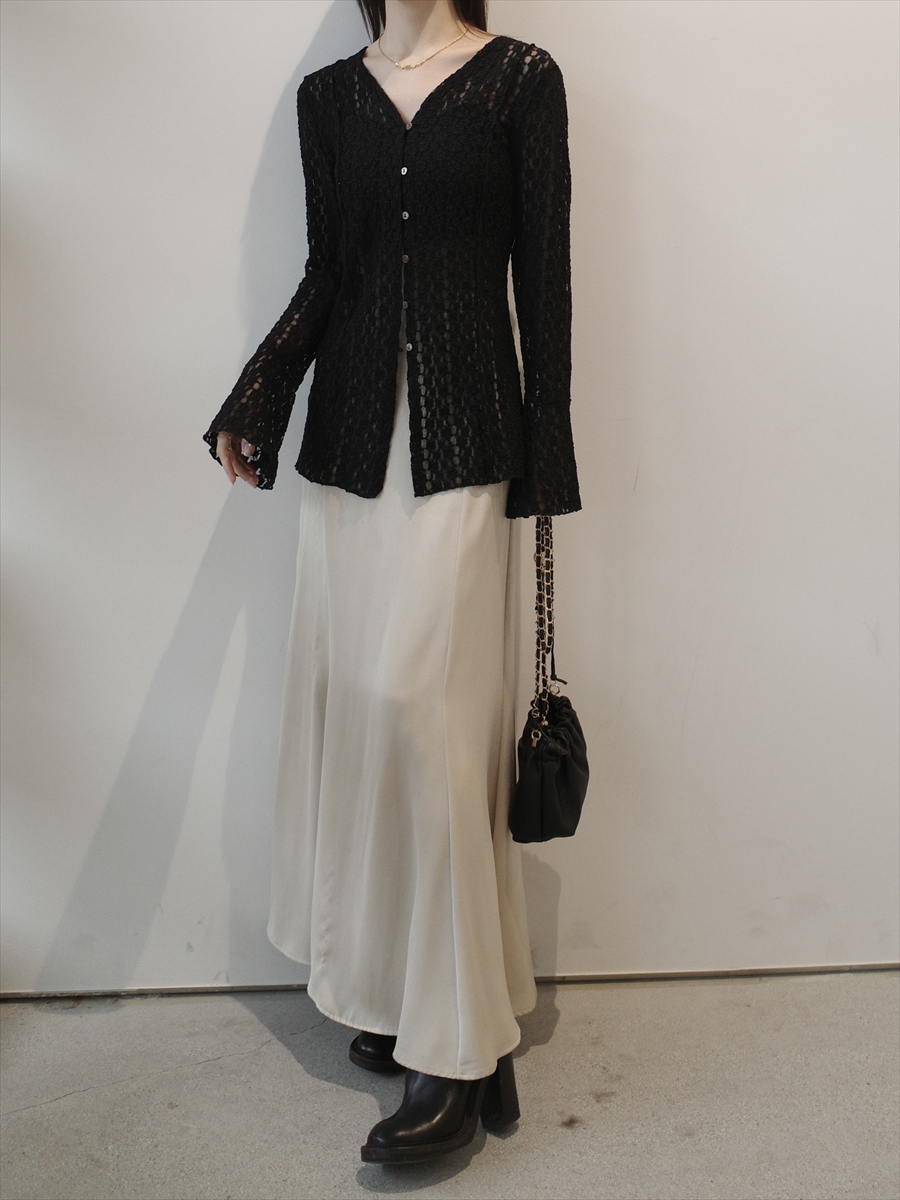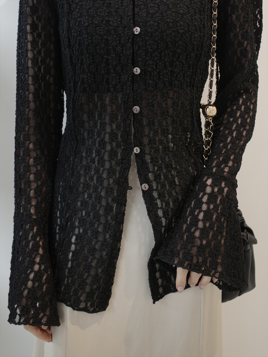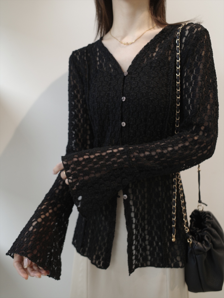 TOPページ > Tops > 【NEW】flower lace bell sleeve cardigan / black