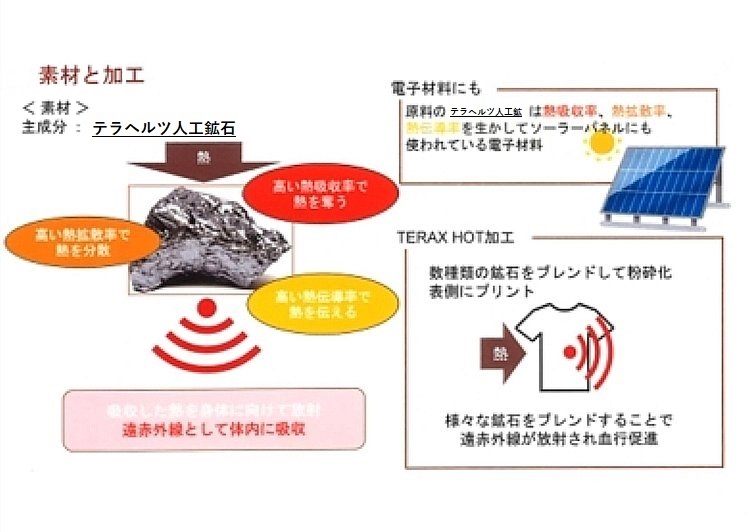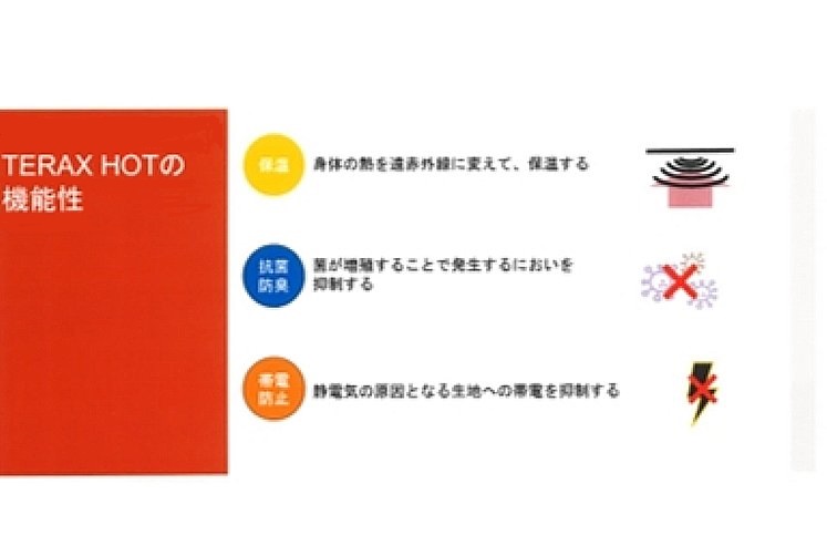 12月上旬頃の発送予定です。 ※予約商品のため、入荷状況により発送が前後する場合がございます。 ※予約商品を含む複数の商品を同時にご注文の場合、 全ての商品が揃い次第の発送となりますのでご注意ください。 保温サーマルウェア:TERAX HOT 長袖ベースレイヤー 機能性インナー アンダーウェア 【TERAX HOTの革新的テクノロジー】 TERAX HOT、テラックスホット、遠赤外線、サーマルウェア、 血行促進、温活、保温インナー、防寒、テラヘルツ波、高機能素材、スポーツインナー 【遠赤外線で体温をキープ】 人体から出る熱を遠赤外線(テラヘルツ波)に変換し増幅・保温する特殊プリントを内側に採用。 ただ温めるのではなく、じんわりと温かさが持続します。 【血行促進をサポート】 遠赤外線効果により、血行を促進し、運動後の心地よい休息への導きをサポート。 新感覚のサーマルウェアです。 寒冷地でのアウトドアや、冷えが気になる季節に最高のパフォーマンスを発揮します。 【超ストレッチで快適な着心地】 ベースとなる生地は、抜群のストレッチ性を兼備。 優しく包み込むようなストレスフリーなフィット感を提供します。 【使用シーン別おすすめポイント】 寒い日のトレーニング時の温かさをキープ。 ウィンタースポーツ薄手でアウターに響きにくく、防寒インナーとして最適。 リラックス・睡眠時血行促進効果で、寝ている間に体のケアをサポート。 日常の温活冷え対策として365日快適に着用可能。 【素材】 ポリエステル90% / ポリウレタン10%(生地裏面にTERAX HOT鉱石プリント加工) 【サイズ詳細(cm)】 Mサイズ:着丈65cm 身幅88cm 裄丈67cm 袖巾16cm 裾巾84cm Lサイズ:着丈69cm 身幅96cm 裄丈69cm 袖巾17.5cm 裾巾92cm 【原産国】 日本製・Made in Japan モデル身長:163cm