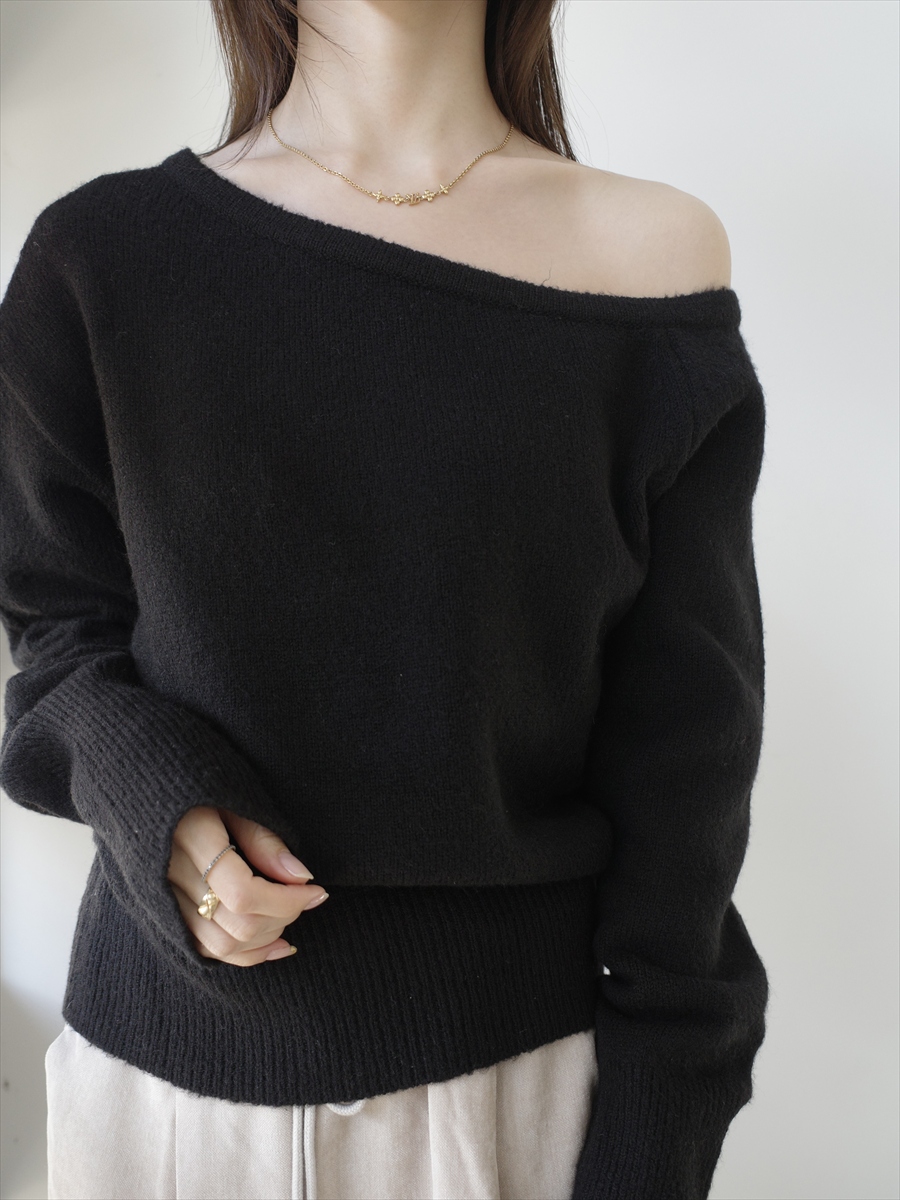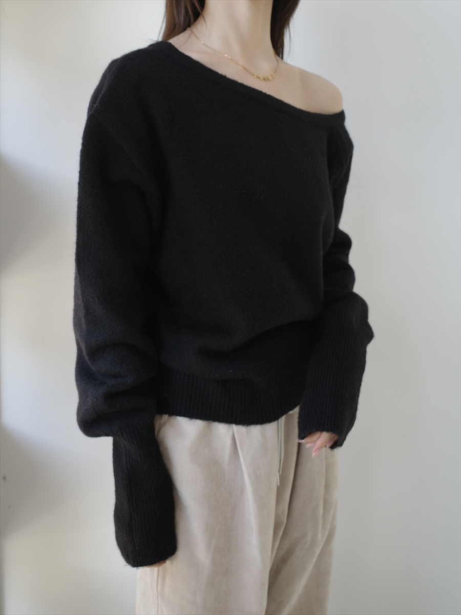 TOPページ > Tops > Knit > 【NEW】off shoulder over size knit / black