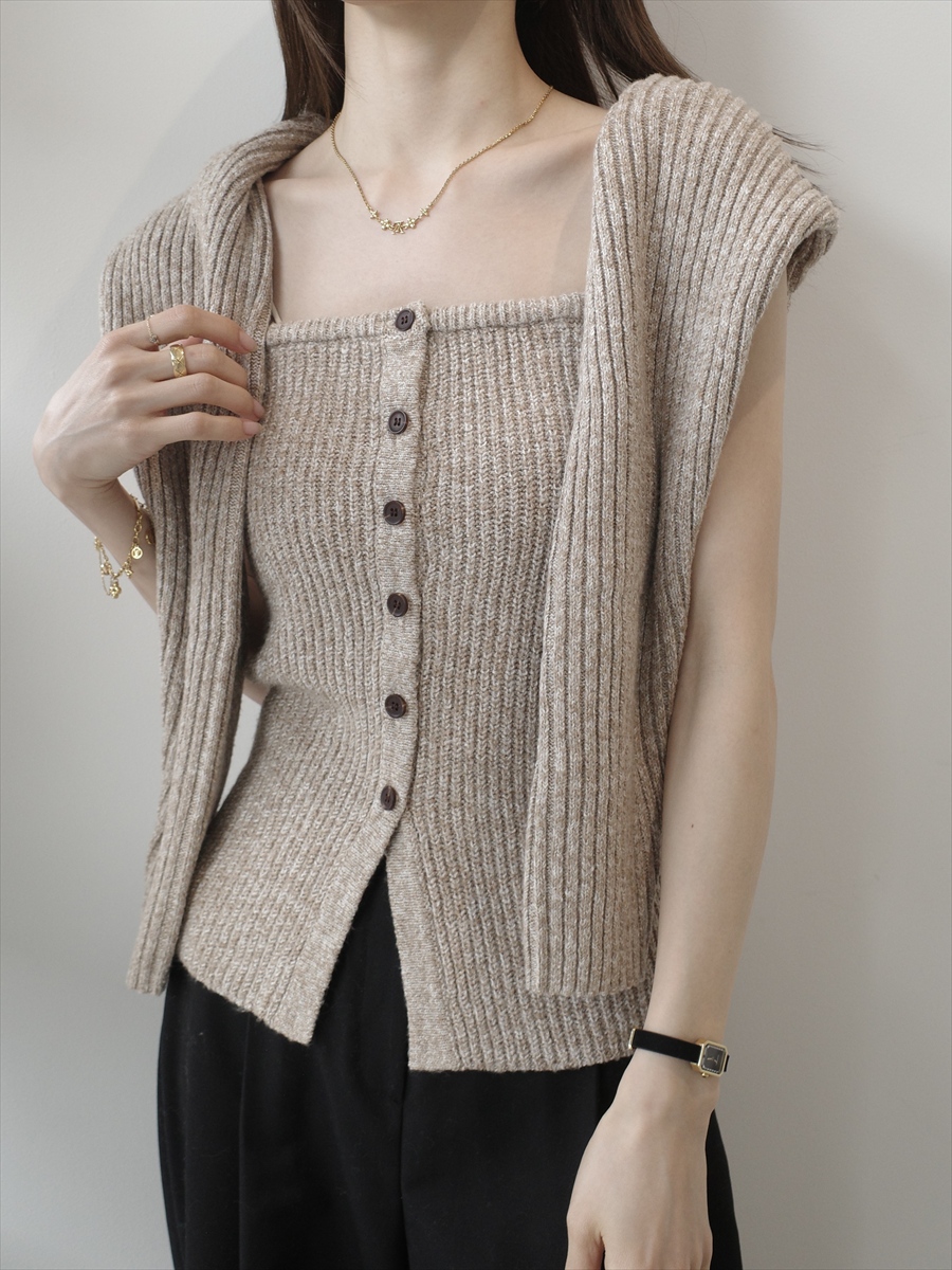 TOPページ > Tops > Knit > 【NEW】rib knit button bustier / beige