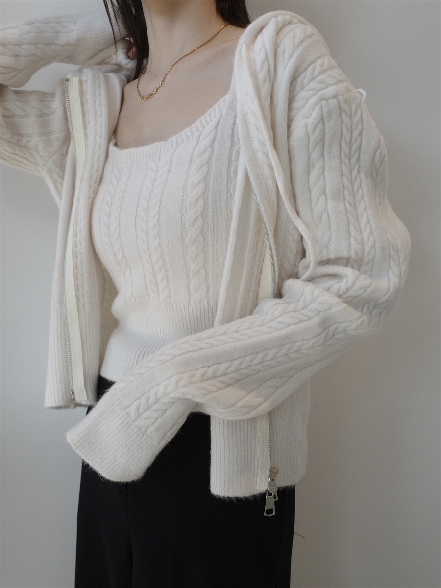 TOPページ > Tops > Knit > 【NEW】camisole set cable knit hoodie / ivory