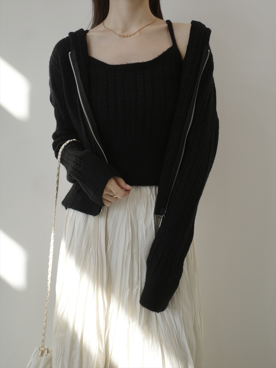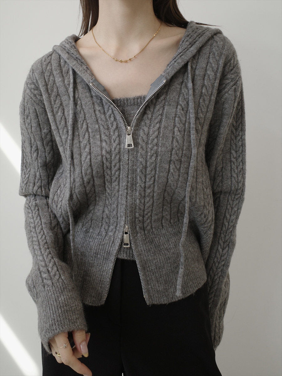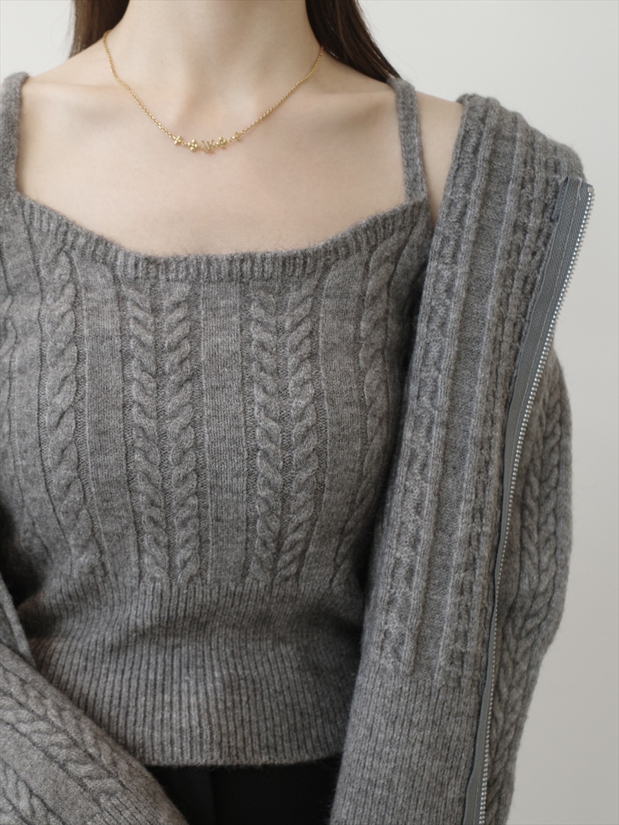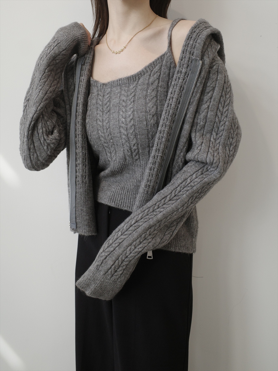 TOPページ > Tops > Knit > 【NEW】camisole set cable knit hoodie / grey