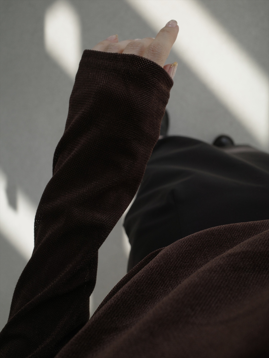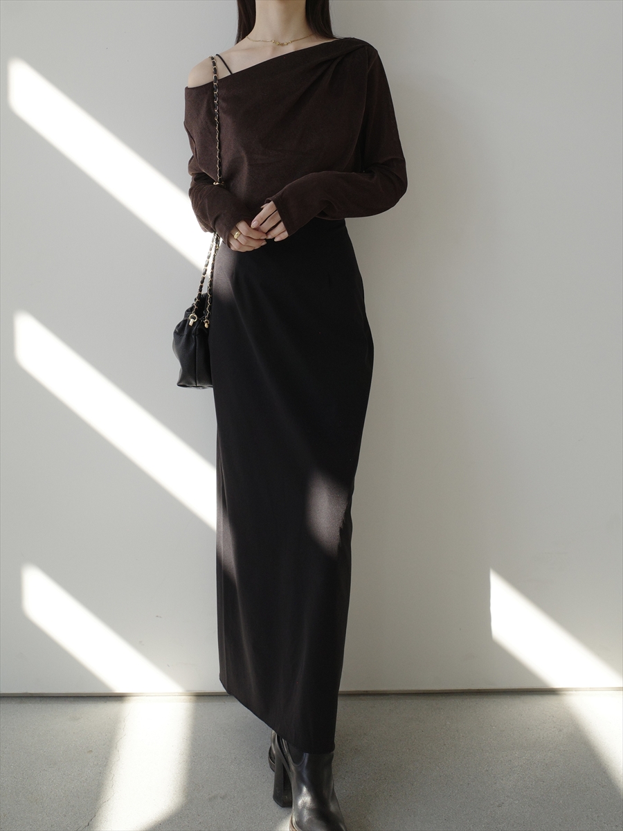 【デザイン&ディテールポイント】 シーズンムード高まるベルベット調の素材を使用したドレープトップス。 肩から胸元にかけて流れるように入ったドレープが女性らしさを演出し、シンプルなシルエットに華やかさをプラス。 程よい落ち感が、ボディラインを美しく見せながらリラックス感も叶えてくれる一枚です。 ブラック、グレー、アイボリー、ブラウンの4色展開です。 【コーディネートポイント】 モノトーンでまとめれば洗練されたスタイルに、ニュアンスカラーと合わせればフェミニンな印象に仕上がります。 スラックスやタイトスカートと合わせてオフィスに、デニムと合わせてデイリーにも活躍する万能アイテム。 ブラックはこちら velvet touch drape tops / black グレーはこちら velvet touch drape tops / grey アイボリーはこちら velvet touch drape tops / grey ※その他のアイテムはモデル私物です。 ■素材 ポリエステル 92% ポリウレタン 8% ■サイズ詳細(cm) 着丈53 身幅43 肩幅38 裾幅45 袖丈63 ■原産国 中国 モデル身長 158cm