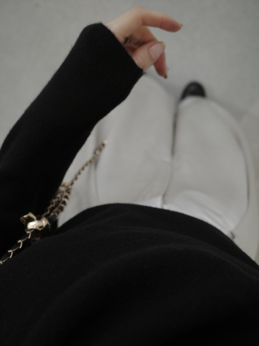 【デザイン&ディテールポイント】 程よく身体に沿う柔らか素材に、胸元のアシンメトリーなドレープデザインを施した大人フェミニンなトップス。 自然に生まれる斜めラインがデコルテを美しく見せ、シンプルながらも一枚で着映えするアイテムです。 柔らかく伸縮性のある素材を使用しているため、着心地はストレスフリー。 タイトすぎないシルエットで、ボディラインを拾いすぎず上品にフィットします。 オン・オフ問わず着回しやすいベーシックカラー。 ベージュ、ブラックの2色展開。 【コーディネートポイント】 スカート合わせで女性らしく、スラックスやデニムと合わせれば程よくモードな印象に。 ジャケットやコートのインナーとしても活躍し、ロングシーズン着用可能な万能トップスです。 ベージュはこちら twist v neck design knit / beige 着用アイテム ■bag ball chain shoulder bag / black ※その他のアイテムはモデル私物です。 ■素材 ポリエステル50% アクリル50% ■サイズ詳細(cm) 着丈53 肩幅30.5 袖丈57.5 バスト70 ■原産国 中国 モデル身長 158cm