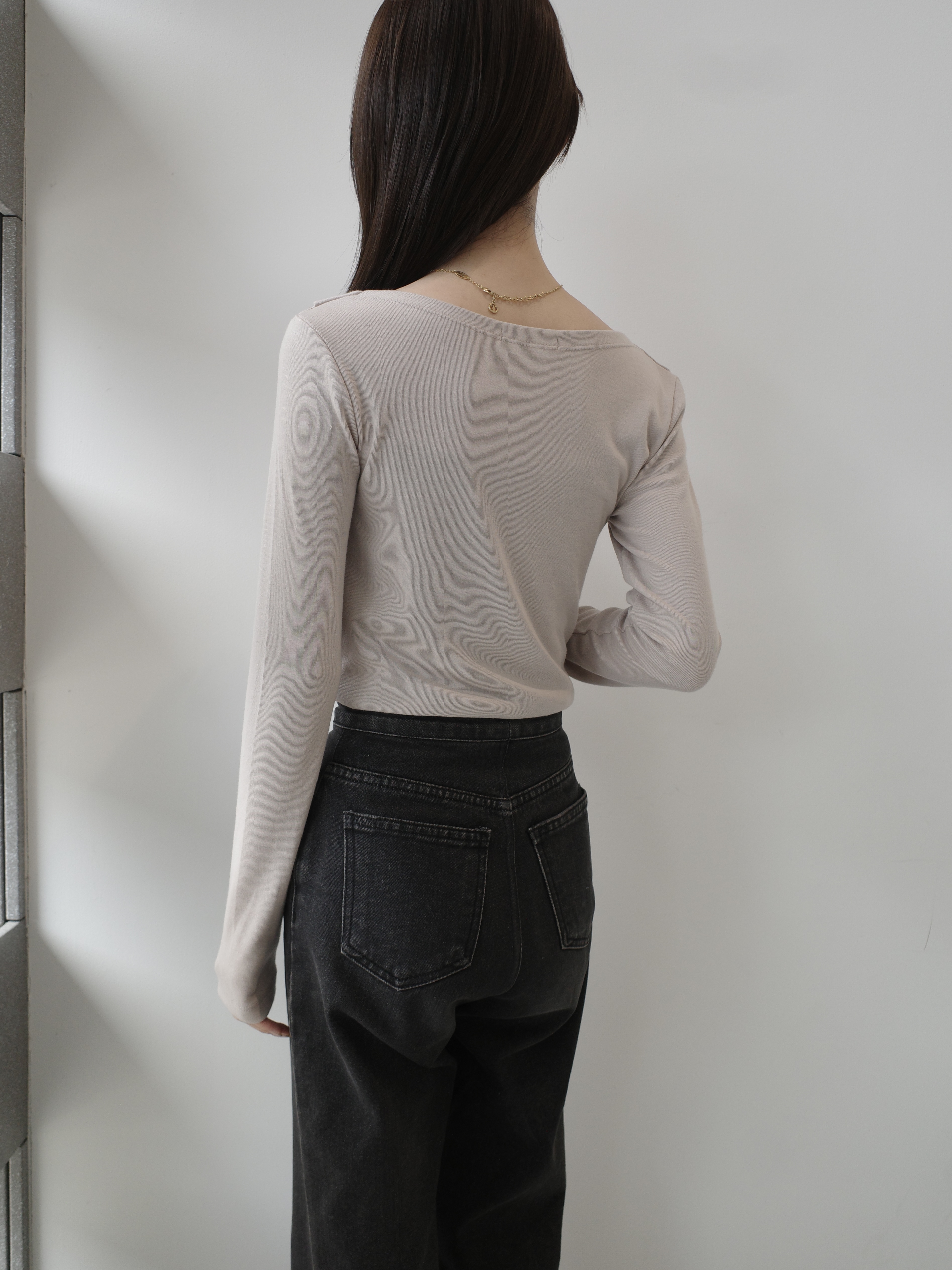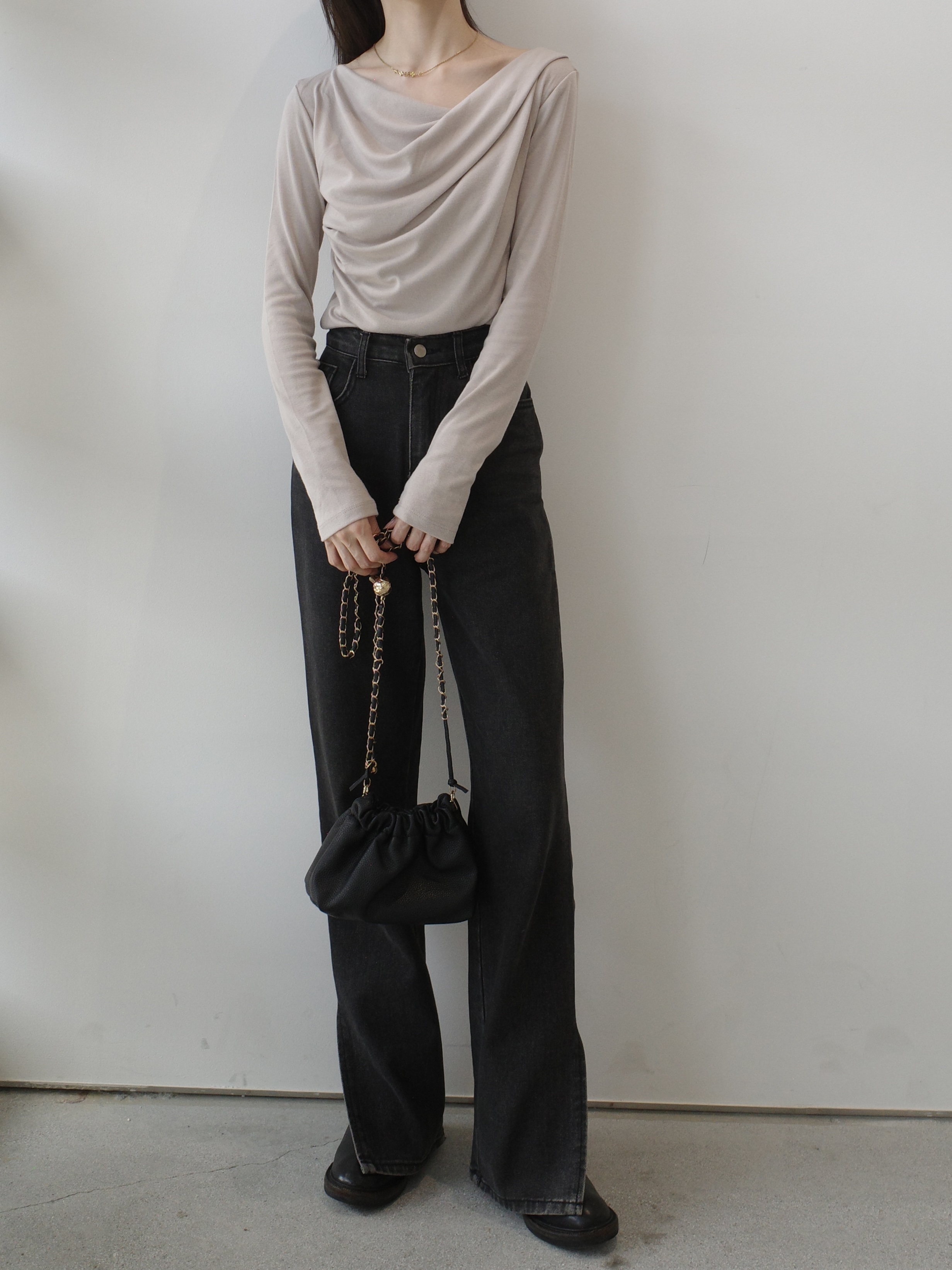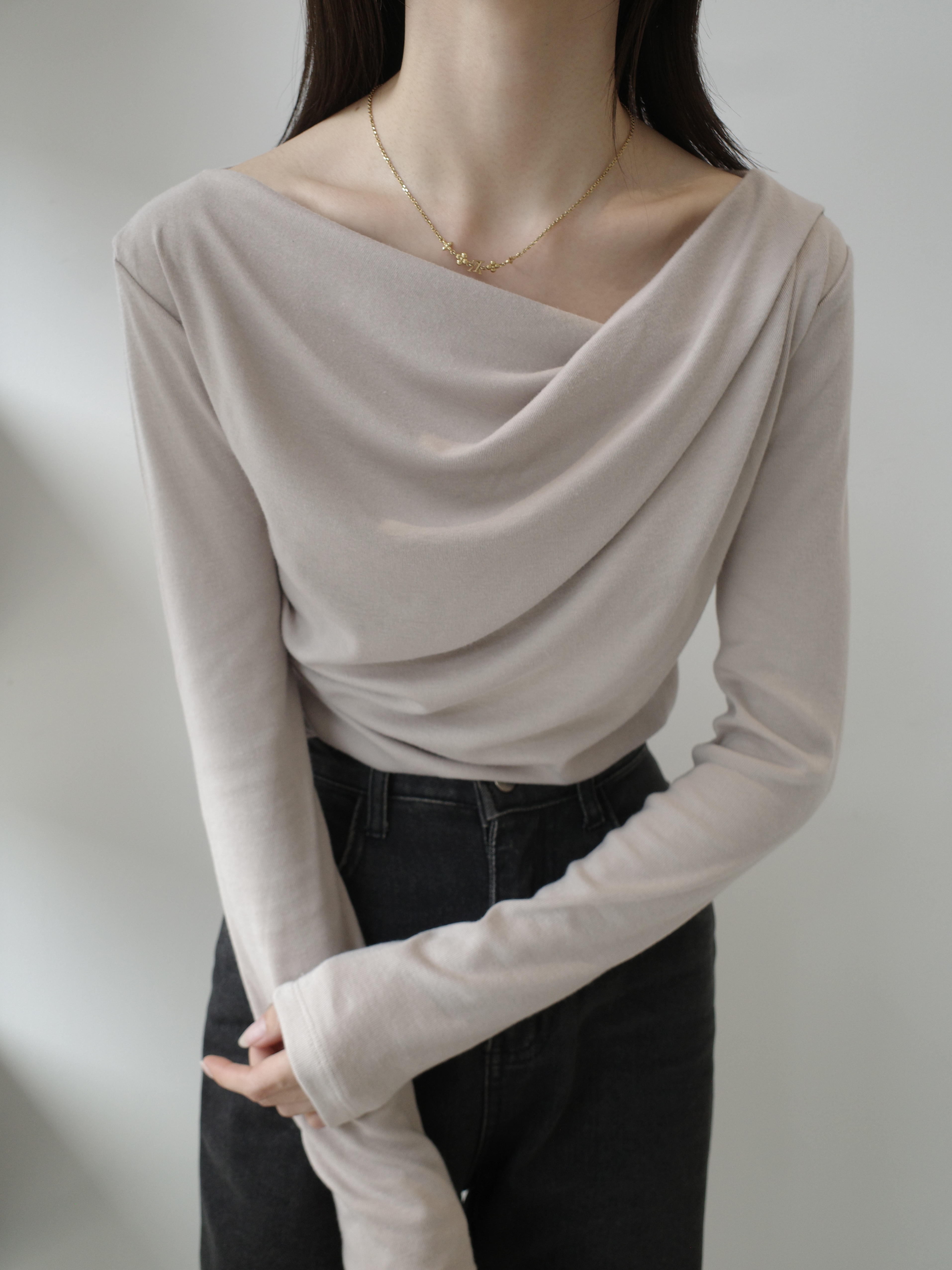 大人気アイテムが、シルエットと素材感をアップデートして追加色も含めて再登場。 計算されたドレープデザインが、デコルテを美しく見せながら上品な女性らしさを演出するロングスリーブトップスです。 首元に自然に生まれる柔らかなドレープが、シンプルながらも印象的なアクセントに。 身体に程よくフィットするシルエットで、インでもアウトでもバランス良く着こなせます。 やや長めのスリーブは手元にニュアンスをプラスし、抜け感のある着こなしを叶えます。 滑らかで落ち感のある素材は肌触りが良く、ストレスフリーな着心地。 ジャケットのインナーとしてもかさばらず、オフィススタイルからデイリーまで幅広く活躍します。 ベーシックながらも一枚で着映えする、ワードローブに欠かせない万能トップス。 ホワイト・ベージュ・ブラックの3色展開で、色違いで揃えたくなる一着です。 ホワイトはこちら drape design top / white ブラックはこちら drape design top / black 着用アイテム ■bag ball chain shoulder bag / black ※その他のアイテムはモデル私物です。 ■素材 ポリエステル60% レーヨン35% ポリウレタン5% ■サイズ詳細(cm) 着丈53 肩巾33 袖丈62 バスト72 ■原産国 韓国 モデル身長 158cm